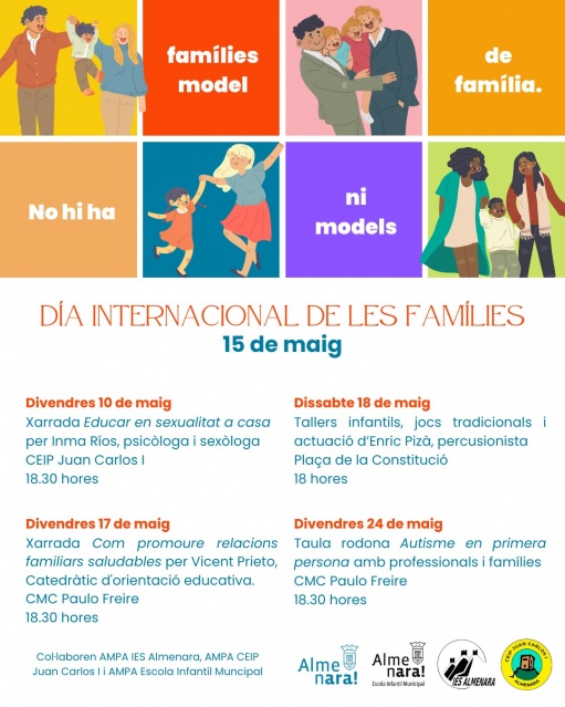 Almenara: El Ayuntamiento de Almenara programa talleres, música y un ciclo de conferencias para celebrar el Día Internacional de las Familias