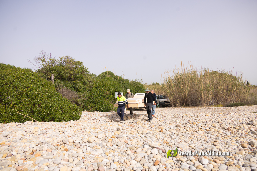 La brigada de manteniment del Consorci del Paisatge Protegit de la Desembocadura del riu Millars i el Grup d'Estudi d'Aus de rapinya GER-EA han completat la instal·lació de tres plataformes previstes per a la cria dels xatracs mongetes.