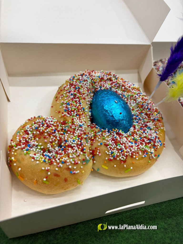 Con una masa esponjosa, decorada con el huevo duro, azúcar y anisetes de colores, este dulce continúa elaborándose de manera manual en numerosos hornos de la capital de la Plana Baixa.