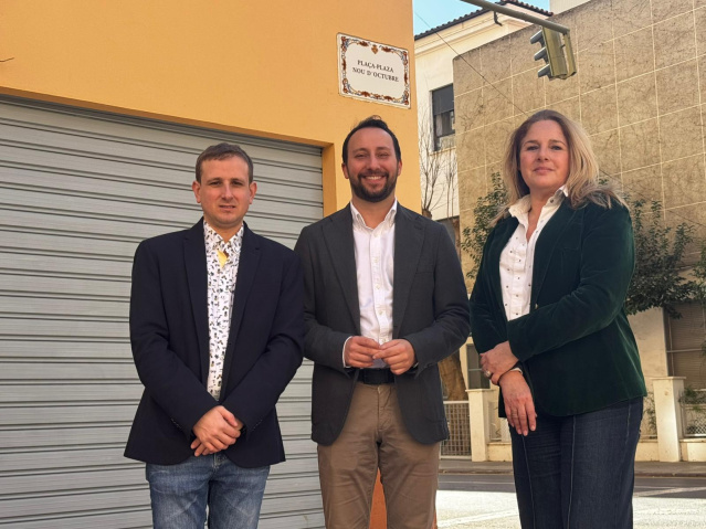 Avui, 10 de febrer de 2026, el portaveu del Grup Municipal del Partit Popular, Sergio Toledo, ha visitat la plaça del Nou d'Octubre junt al president de l'Associació Cultural Cardona Vives, Iván Sales, i a la vicepresidenta María José Cruz, després d'eliminar el seu antic nom, la Placa del País Valencià, i complir així amb la normativa vigent i la tradició històrica de la ciutat.