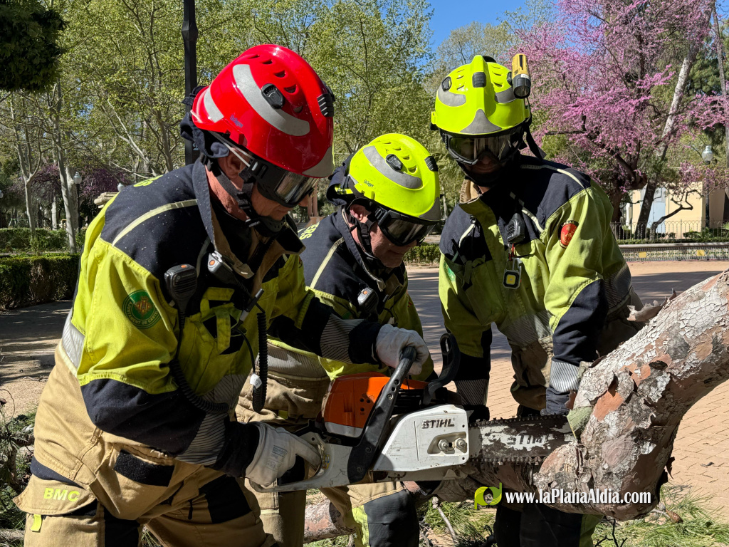 Además de Bomberos y Policía Local, las Brigadas Municipales y la empresa Centre Verd continúan trabajando para solventar las incidencias provocadas por el viento en la vía pública.