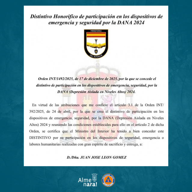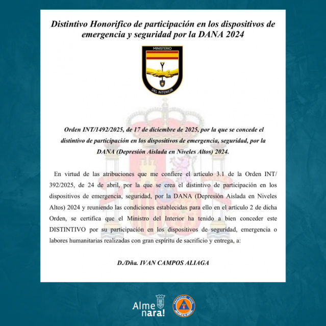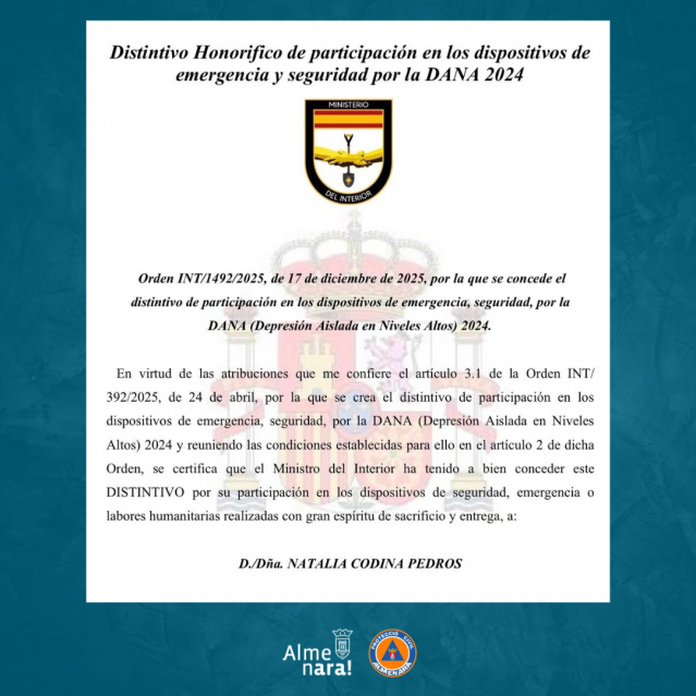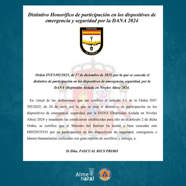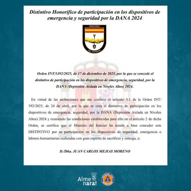 • El Ministeri de l'Interior reconeix a cinc voluntaris de Protecció Civil d'Almenara per la seua tasca durant la DANA 2024