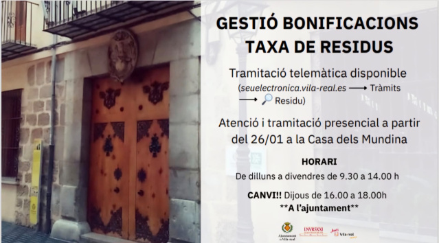 • Vila-real crea una oficina temporal per a les bonificacions de la taxa de residus a la Casa dels Mundina