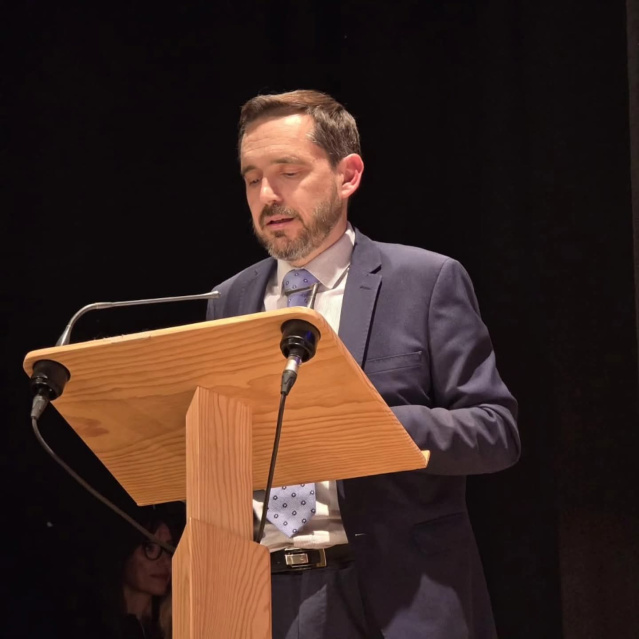 • Óscar Rueda, vicepresident de Lo Rat Penat, mantenidor en la proclamació de les Reines de la Casa de la Comunitat Valenciana a Saragossa per a l'any 2026, en una celebració marcada pel sentiment, la convivència i l'exaltació de les tradicions valencianes