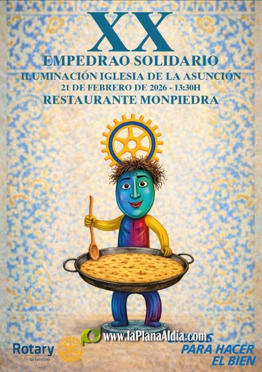 Veinte ediciones ya de un evento que se ha instituido como uno de los grandes actos solidarios en el municipio de La Vall d'Uixó. El Rotary Club de La Vall convoca su "Empedrao Solidario" del 2026 para el próximo dia 21 de febrero en los salones del Grupo Monpiedra ubicados en el edificio de la Caja Rural La Vall en pleno centro de la ciudad.