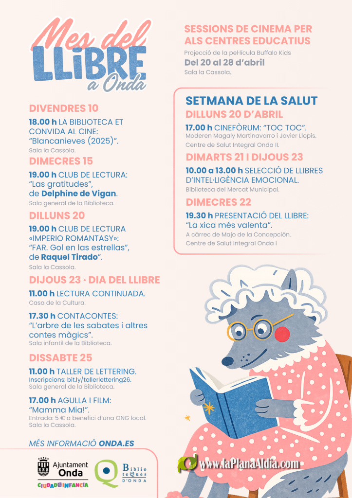 El Ayuntamiento de Onda vuelve a situar la cultura en el centro de la vida municipal con la celebración del Mes del Llibre, una programación impulsada por la Biblioteca Municipal que convierte abril en un punto de encuentro para lectores de todas las edades con actividades participativas y propuestas creativas.