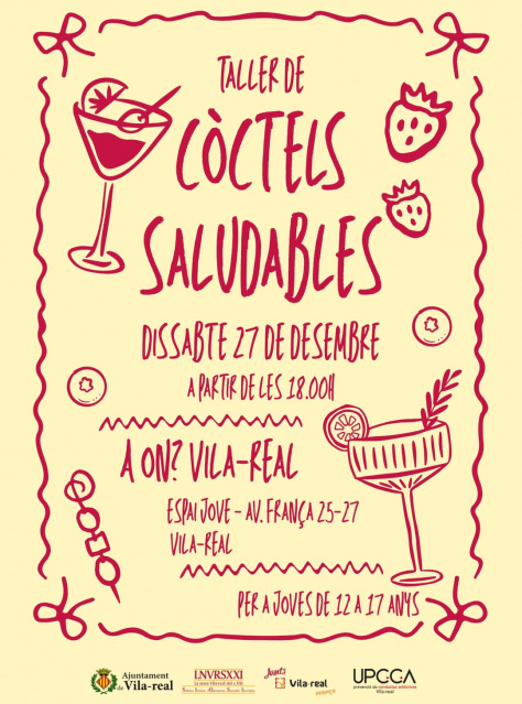La Unidad de Prevención Comunitaria en Conductas Adictivas (UPCCA), dependiente de la Concejalía de Sanidad de Vila-real, organiza para el próximo 27 de diciembre, a partir de las 18:00 horas, un taller de elaboración de cócteles saludables dirigido a jóvenes de entre 12 y 17 años, que se celebrará en el Espai Jove.