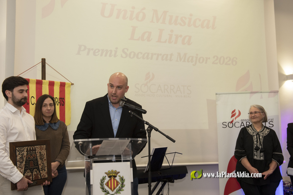 L'Associació Cultural Socarrats ha lliurat a la Unió Musical La Lira de Vila-real el Socarrat Major 2026, un guardó que reconeix la trajectòria i la contribució d'aquesta entitat a la cultura valenciana i a l'ús del valencià com a llengua vehicular.